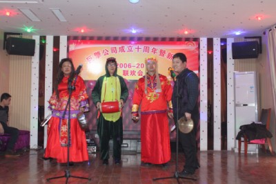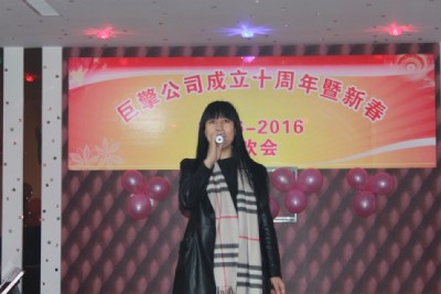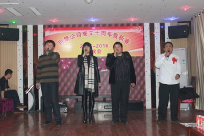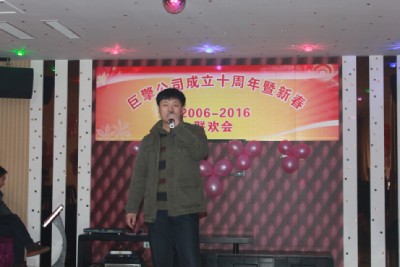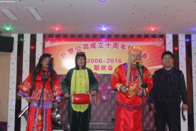 2015年12月31日,巨擎公司全體員工歡聚一堂,熱烈慶祝公司成立十周年,并舉辦了聯(lián)歡會。從一線員工,到銷售、技術、后勤人員,紛紛上臺展示自己的才藝,尤其是70高齡的孫工,童心未泯,跳起了兒童舞蹈《小龍人》,節(jié)目有優(yōu)美的抒情歌曲、激情歡快的舞蹈,還有驚險刺激的魔術,也有回首過去、展望未來的散文詩朗誦……整個巨擎公司成了歡樂的海洋。