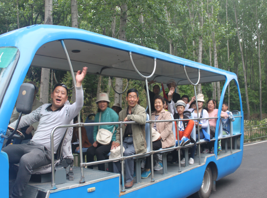 優(yōu)秀員工乘電瓶車游水洞景區(qū)