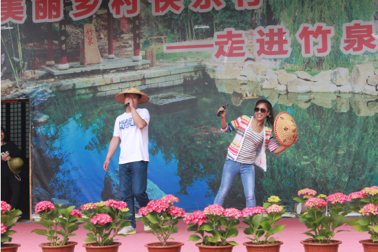 竹泉村內(nèi)生產(chǎn)部長(zhǎng)王雷和優(yōu)秀員工賈敬合唱